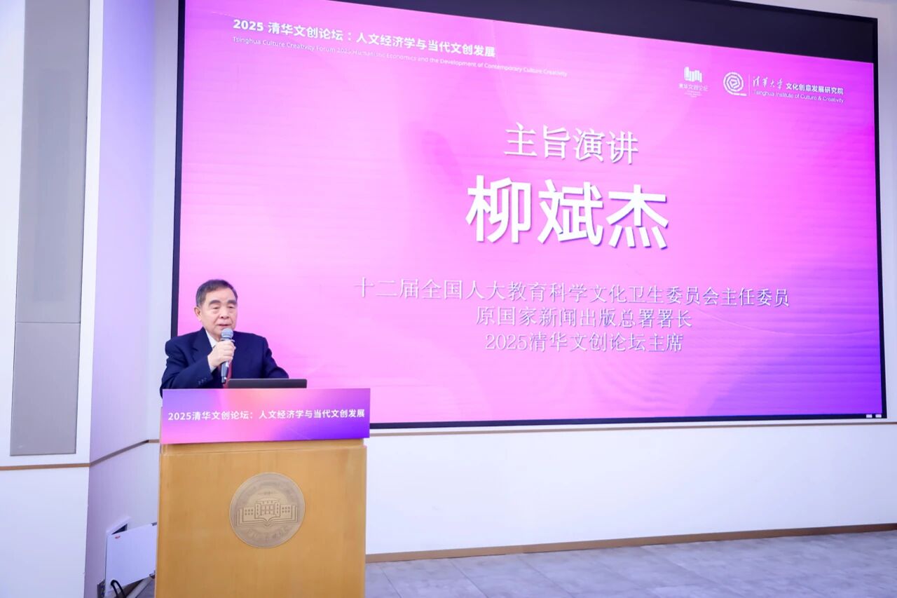 出席本届文创论坛的嘉宾有:十二届全国人大教育科学文化卫生委员会主任委员、原国家新闻出版总署署长、2025清华文创论坛主席柳斌杰,清华大学校务委员会副主任史宗恺,文化和旅游部产业发展司副司长傅瀚霄,中共广东省佛山市南海区委书记顾耀辉,新华社研究院院长刘刚,北京大学文化产业研究院院长向勇,中央财经大学文化经济研究院院长魏鹏举,腾讯研究院高级顾问冯宏声,清华大学新闻与传播学院院长周庆安,清华大学新闻与传播学院学术委员会主任、清华大学文化创意发展研究院院长胡钰,清华大学新闻与传播学院、人工智能学院双聘教授、新媒体研究中心主任沈阳,清华校友总会文创专委会执行副会长殷秩松,亚利桑那州立大学终身教授吴旭,中国烹饪协会第五届、第六届副会长边疆,中国社会科学院新闻与传播研究所研究员、新闻传播与中国式现代化研究室主任沙垚,以及来自政界、产业界及媒体界的各位领导、专家和嘉宾,与会嘉宾畅所欲言、各抒己见,深刻把握人文经济学的核心要义与实践路径,为当代文创产业高质量发展凝聚了广泛共识与强劲合力。论坛由清华大学新闻与传播学院副院长、文化创意发展研究院副院长张铮主持。