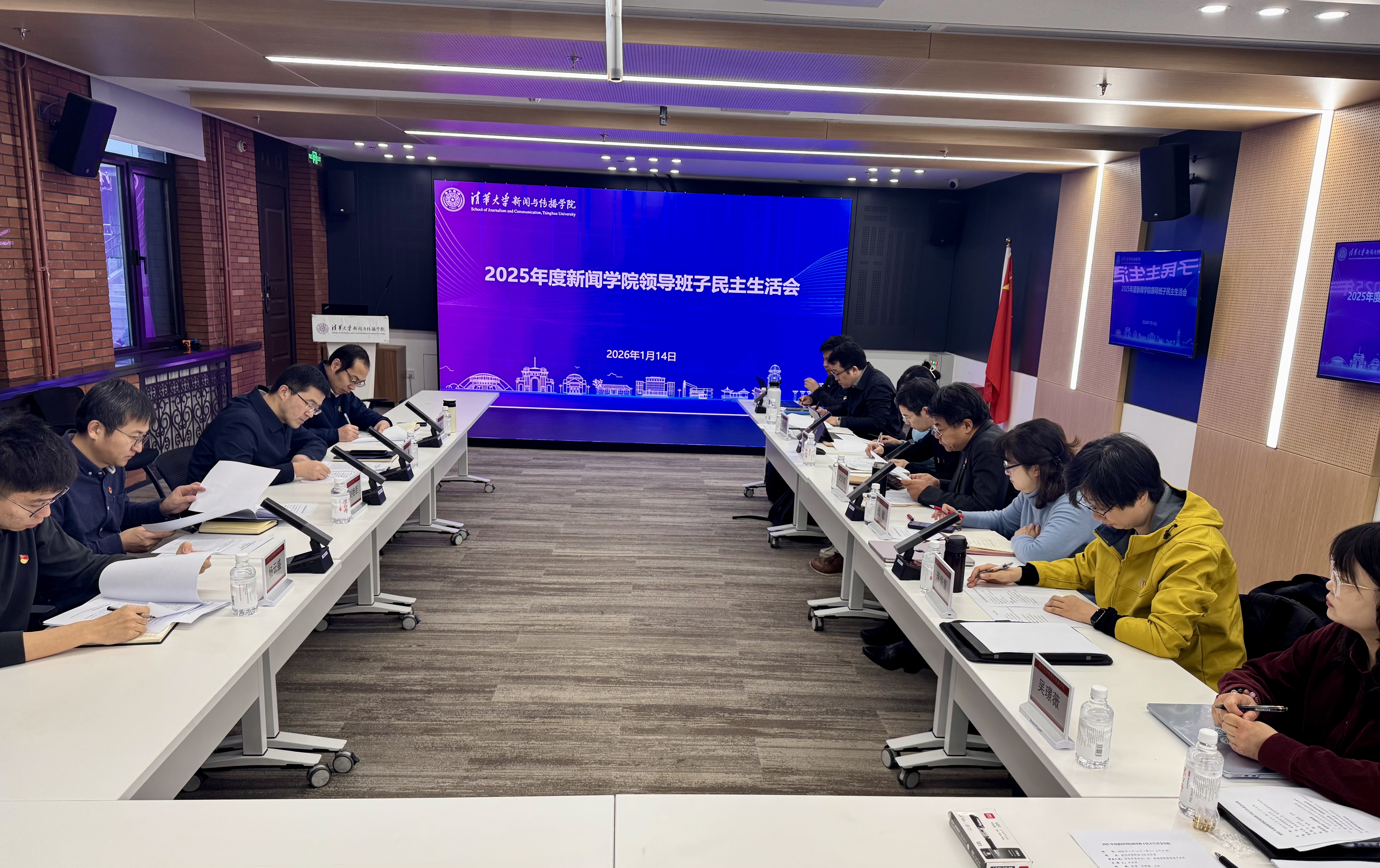 1月14日上午,新闻学院召开巡视整改专题民主生活会暨2025年度院领导班子民主生活会。校党委副书记过勇出席会议,校党委第一巡视组组长孟天广、党委组织部副部长刘艳臣、纪检监察机构杨云盛等列席会议。会议由院党委书记史安斌主持,院长周庆安,副院长杭敏、张莉、张铮,党委副书记蒋俏蕾等党政班子全体成员参加。