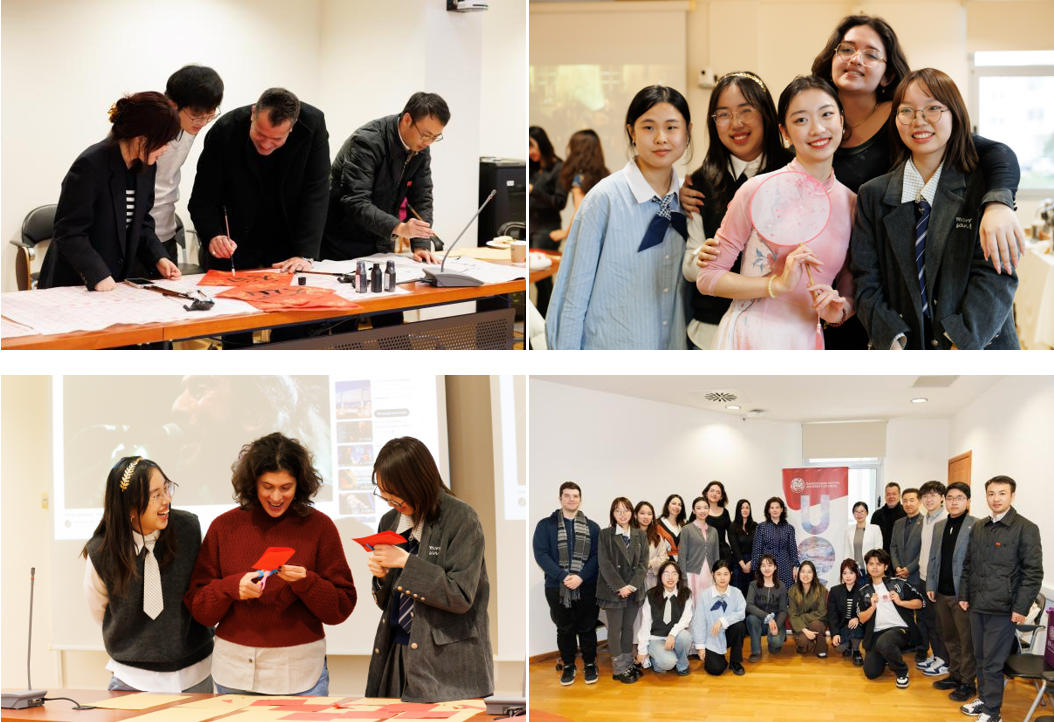 在克里特大学,严肃的学术座谈与热烈的文化游园相得益彰。围绕移民政策、媒介赋权等话题的讨论,展现了希腊学者对欧洲治理的关切。而随后举办的游园会,则让文明在欢声笑语中流淌。书法体验区,支队成员与希腊师生一同执笔,书写希腊师生的专属中文名,写下“福”字。舞乐区,汉服飘逸,中希学子互相教授舞步,节奏与笑声融为一体。剪纸区内,一幅幅窗花在指尖绽放。这场游园会,将“文明互鉴”化为了笔墨的触感、舞蹈的节拍和剪纸的形状,让遥远的文化变得可亲可玩,在共同的创造中凝结友谊。