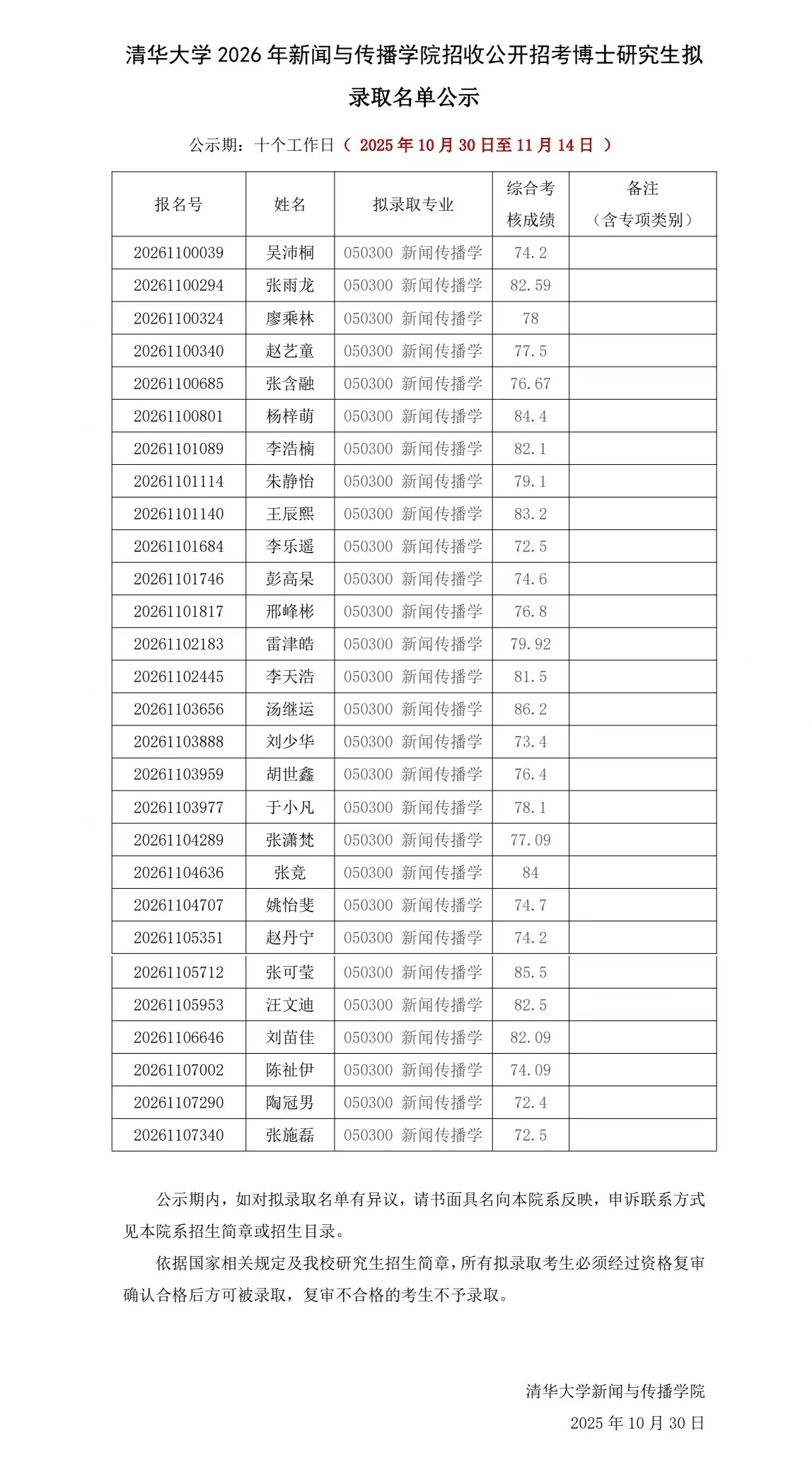 上一条:清华大学2026年新闻与传播学院接收推荐免试直硕生拟录取名单公示