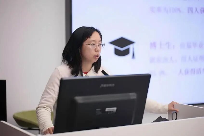 庄臣老师概述了2025届新闻学院毕业生就业情况。学院毕业生毕业去向落实率保持较高水平,重要领域就业率正稳步提升,越来越多毕业生主动选择奔赴人民日报、新华社等主流媒体,以及中央和地方各级政府相关岗位建功立业。庄老师说,新闻专业的特性决定了学院毕业生的就业进度相对缓慢,同学们要稳住心态,坚定信心,以积极昂扬的状态面对“就业季”。此外,庄臣老师对就业手续办理的相关事项作了说明,她详细介绍了签约就业、用人证明、自由职业和自主创业等毕业去向的具体要求,以及《就业推荐表》和《就业协议书》的填写流程。同时,她也欢迎大家在求职季随时通过就业老师、就业助理咨询问题、提出建议。