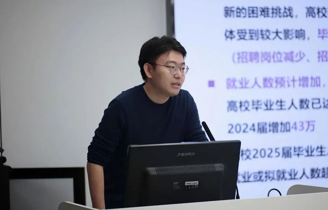 10月31日晚,清华大学新闻与传播学院2026届毕业生就业动员会在新闻学院院馆203举行。清华大学学生职业发展指导中心教师张杨,新闻与传播学院党委副书记蒋俏蕾,学院15届校友、人民日报社新媒体中心客户端运营二室副主编韩晓萌,党委委员、党委办公室主任庄臣以及近70位毕业生参加会议。会议由学院职业发展助理李乐遥主持。